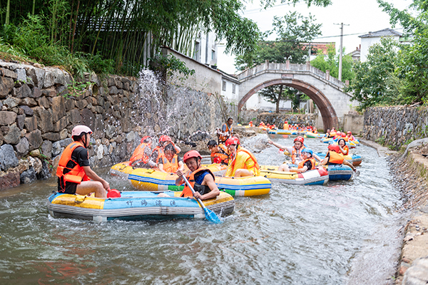 在享用豐盛的午餐后,午后,我們乘坐大巴車前往竹海漂流,迎接更為刺激的漂流活動。穿上救生衣,坐上漂流艇,我們仿佛化身成了勇敢的探險家。隨著水流的起伏,漂流艇時而飛速下滑,時而緩緩漂流,我們的心情也跟著起伏不定,既緊張又興奮。
